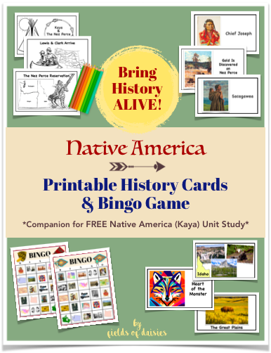 Made specifically to go along with Fields of Daisies FREE Native America (AG Kaya) Unit Study, use these cards to discover all of the exciting history of the Native American People, Places, and Events!